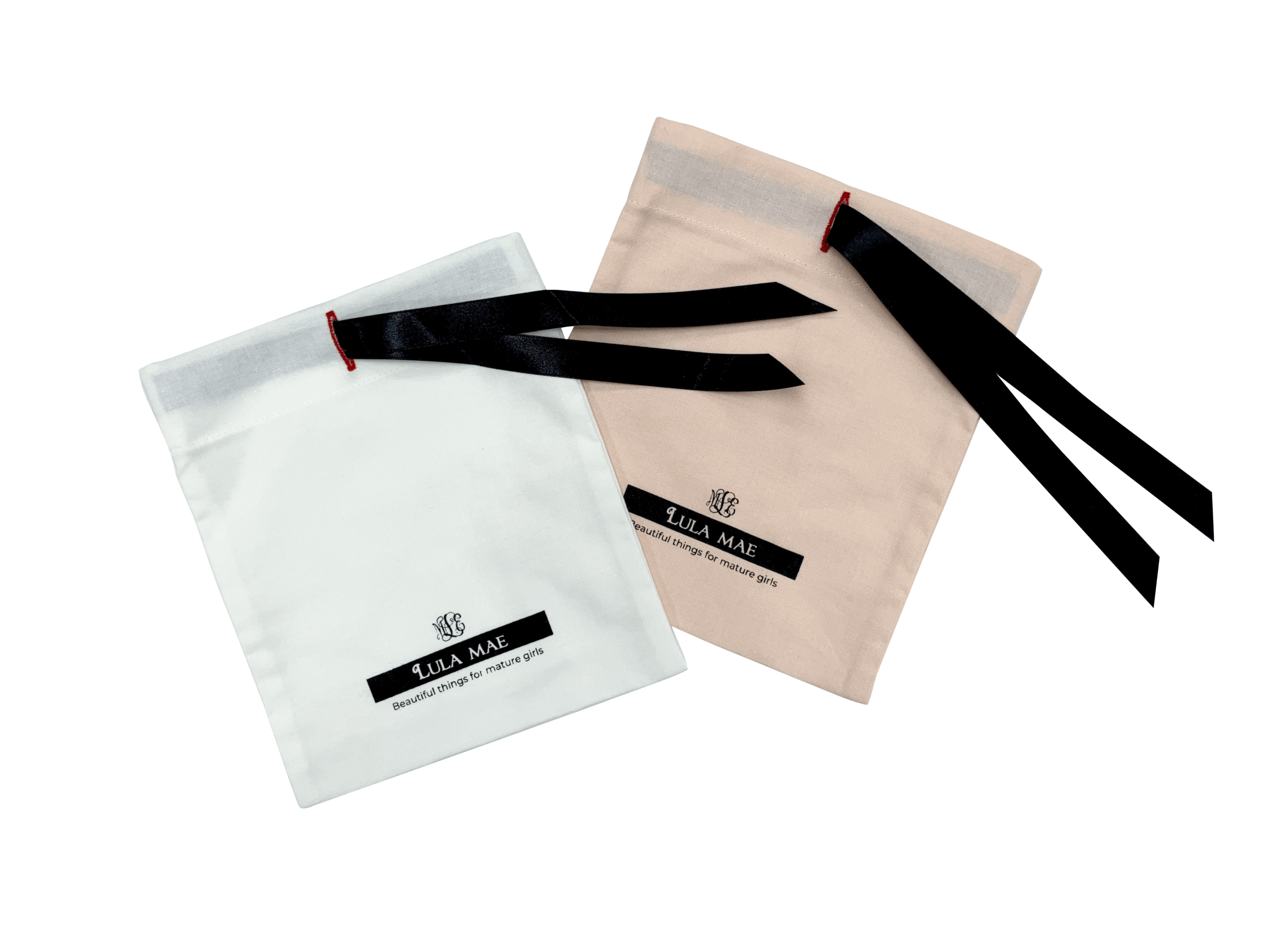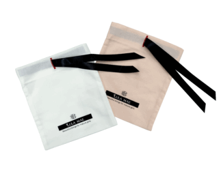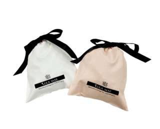 アクセサリーブランド「LULA MAE」様より ギフト用巾着としてご依頼を頂きました。 口元のセンター部分にボタンホールを空けて リボンを通す仕様になっております。